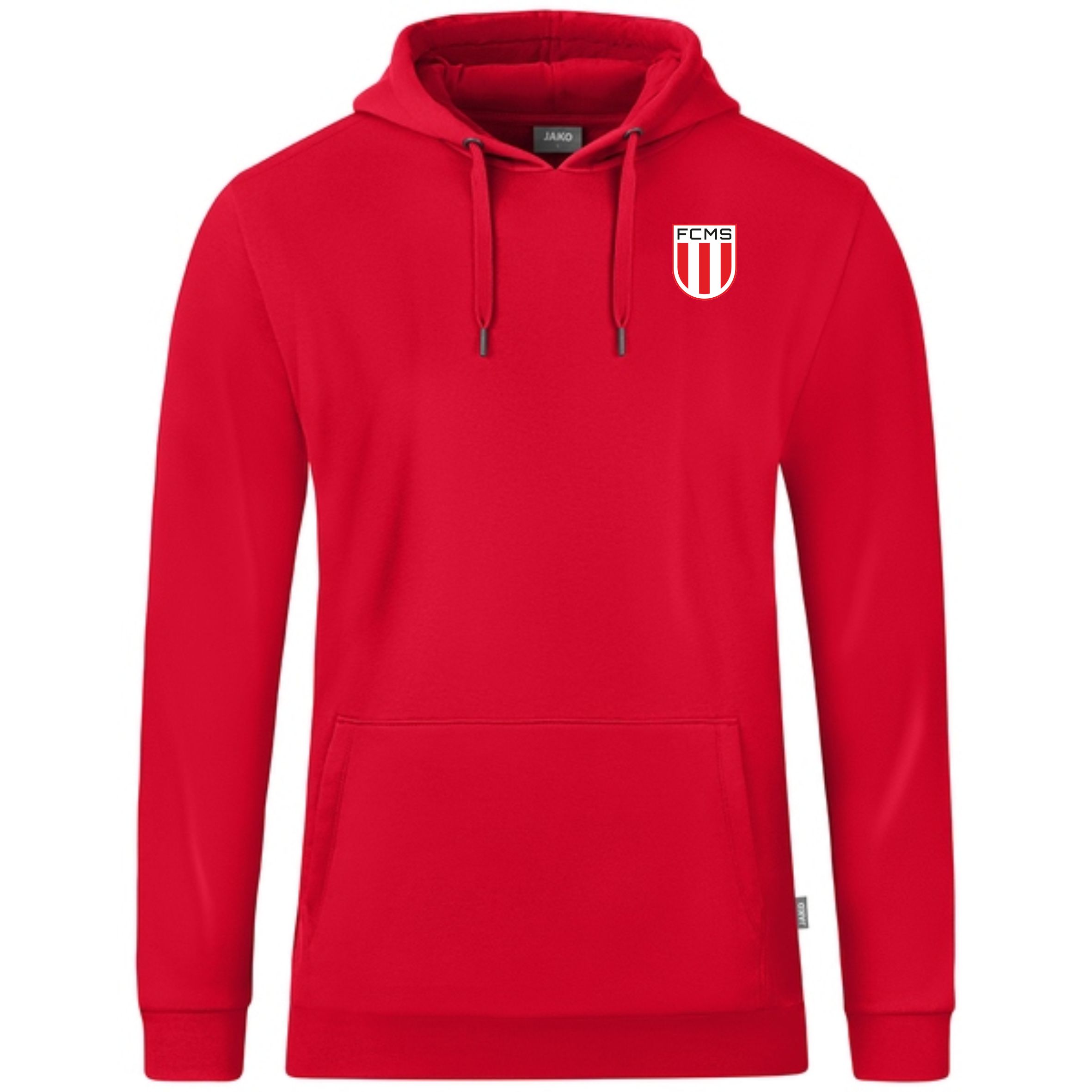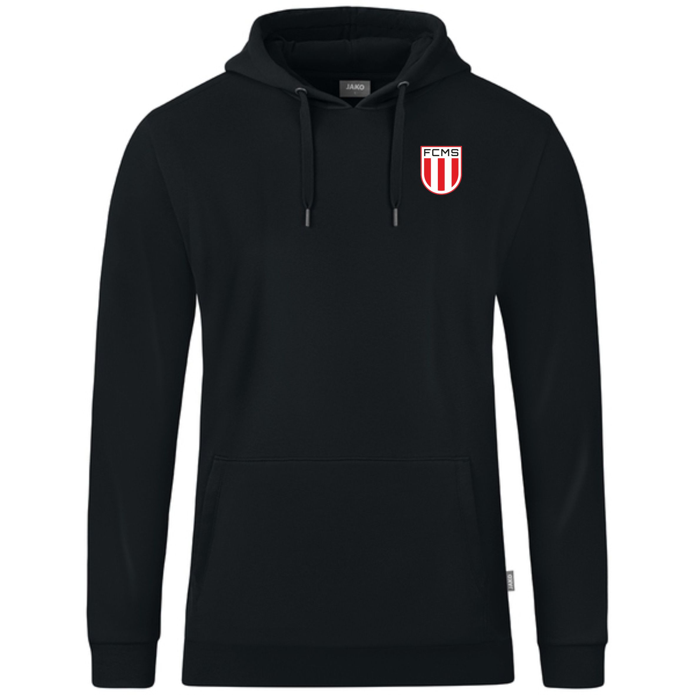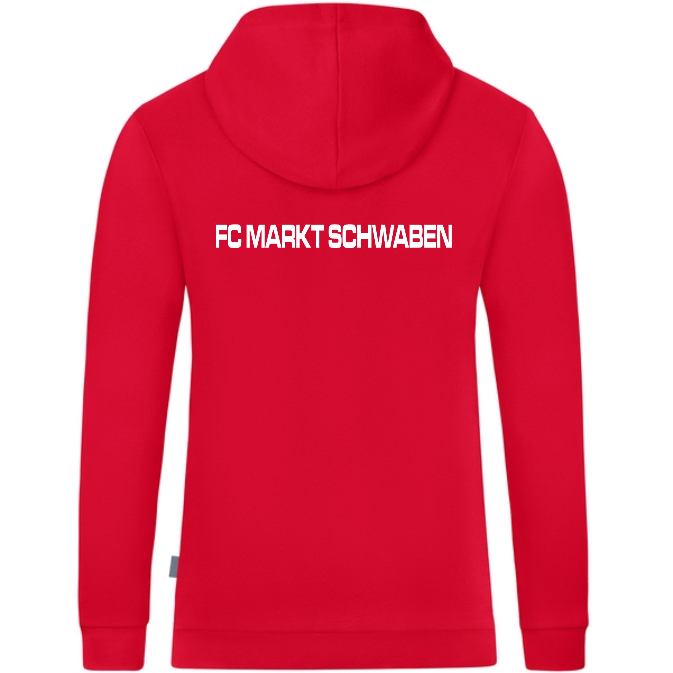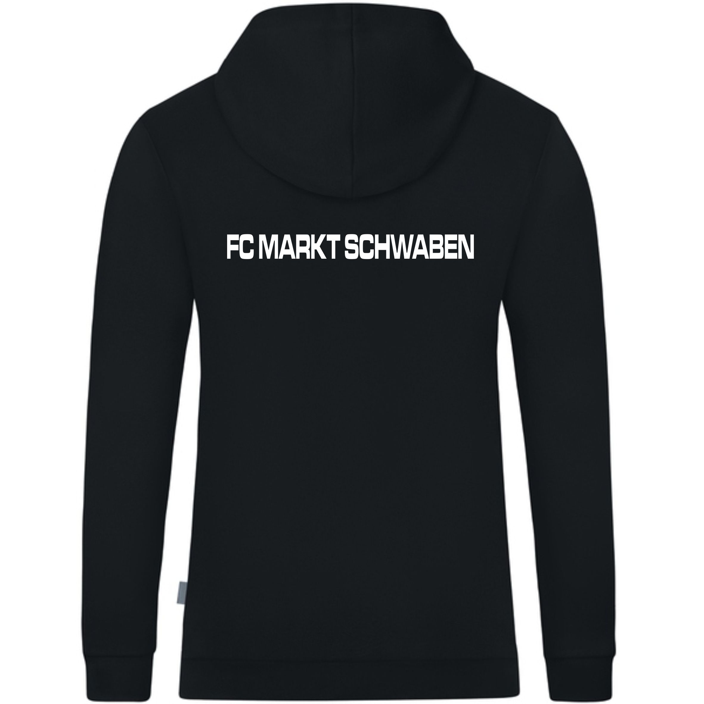 Kapuzensweat mit Vereinslogo auf der Brust und Vereinsname am Rücken.